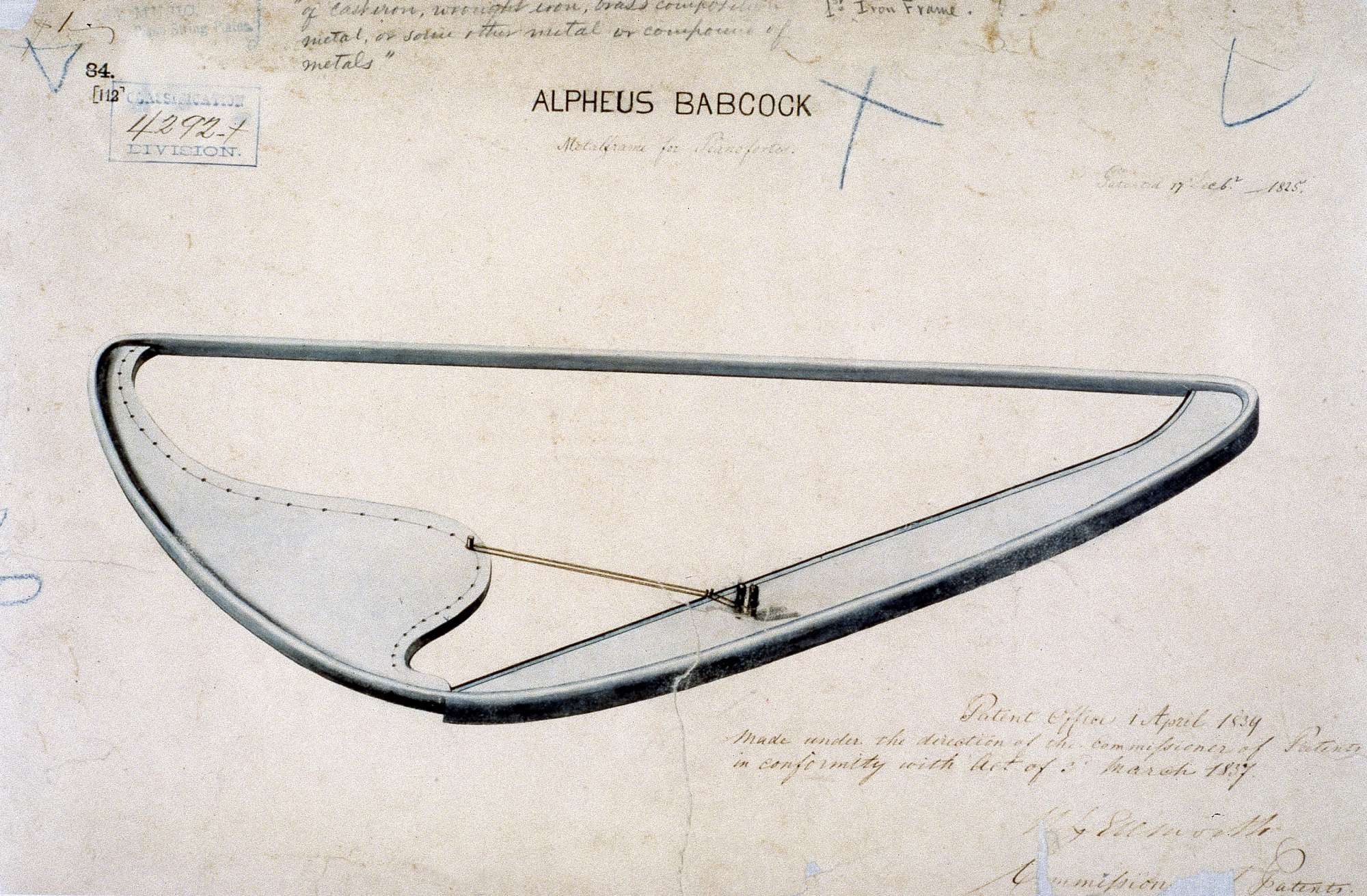 The first iron frame is developed, allowing for much higher tension strings. Modern piano frames can have as much as 20 tons of total string tension. This advancement industrialized the manufacturing of the piano.