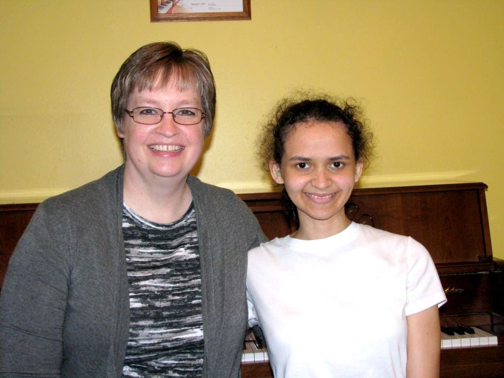 Celeste was diagnosed with autism at age two, and she was about 12 years old when she started piano with Janita. Her mother Deanna had tried to start Celeste with a teacher in a different method, but the teacher was unwilling to work with her. Janita was willing to work with Celeste where she was and move forward at Celeste’s pace. Celeste blossomed under Janita’s guidance, and by the time Celeste came to my studio, she was making great progress.